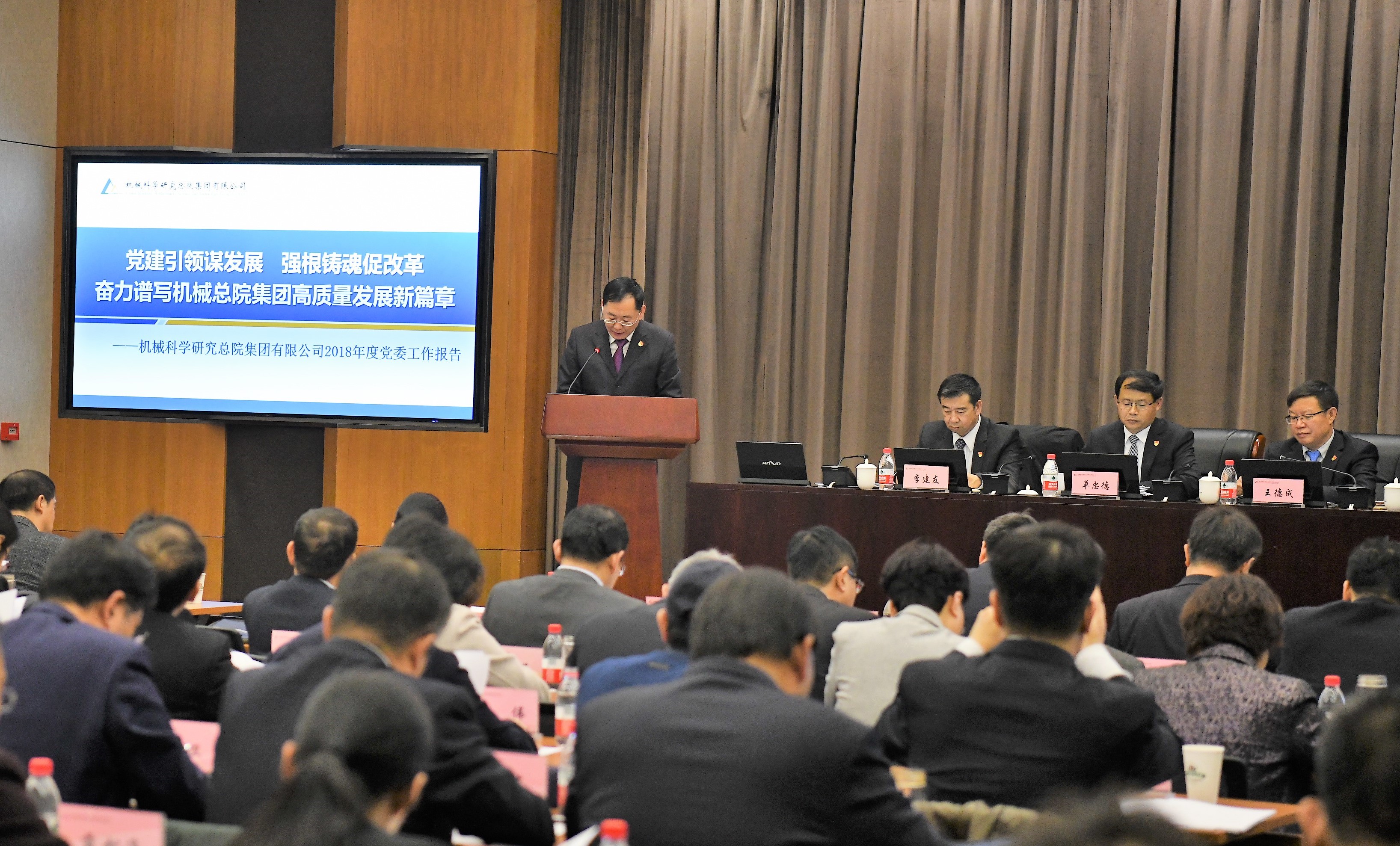 2019年1月18-19日,機械科學(xué)研究總院集團有限公司在京召開2019年度黨委工作會議。機械總院集團黨委委員,總工程師,工會主席,副總師,職能管理部門負責(zé)人,各單位領(lǐng)導(dǎo)班子成員、工會主席,總部黨總支委員,總部中層以及集團職工代表參加會議。會議由集團副總經(jīng)理單忠德主持。