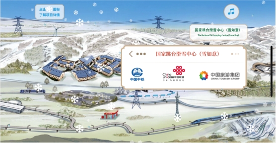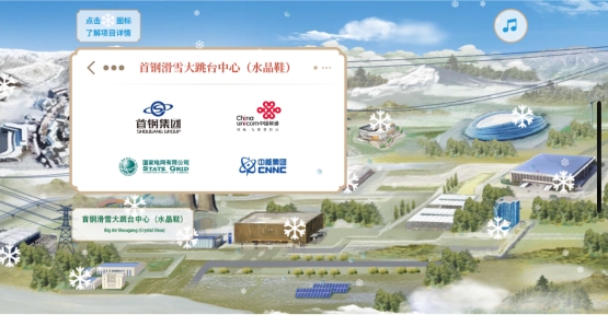 向左滑動(dòng)來到首鋼園附近,由首鋼集團(tuán)建設(shè)的首鋼滑雪大跳臺(tái)(水晶鞋)與首鋼冷卻塔交相輝映,這里將承擔(dān)單板和自由式滑雪大跳臺(tái)比賽項(xiàng)目,其設(shè)計(jì)理念源自中國(guó)敦煌壁畫中傳統(tǒng)的飛天造型,從側(cè)面看去猶如一只靈動(dòng)的“水晶鞋”。首鋼園作為冬奧組委所在地,由中核集團(tuán)、國(guó)家電網(wǎng)、中國(guó)聯(lián)通等提供的技術(shù)服務(wù),是奧運(yùn)籌備和指揮神經(jīng)中樞的重要保障。